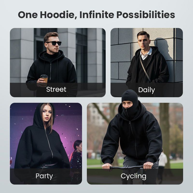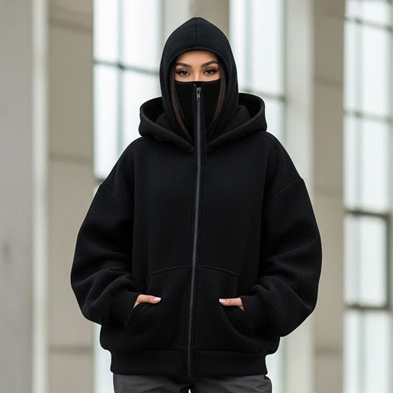 ADJUSTABLE FACE MASK:Featuring a sleek, stealthy look, this hoodie is inspired by ninja apparel, complete with a face-covering mask for an authentic and edgy style.